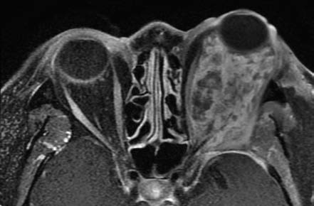 Figure 2 MRI imaging of left orbital arteriovenous malformation