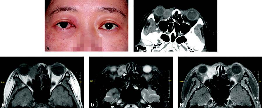 Figure 1 Appearance and imaging of a patient with right lacrimal sac squamous carcinoma